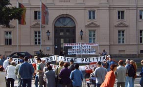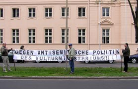 Beschwerde beim Bundesverfassungsgericht![]() Gegen den im Frühjahr 2005 zwischen dem Land und der hoch überschuldeten und seit Ende 2000 zahlungs- und handlungsunfähigen jüdischen Gemeinde Land Brandenburg KdöR verabschiedeten Staatsvertrag hat jetzt die Gesetzestreue Jüdische Landesgemeinde beim Bundesverfassungsgericht Beschwerde erhoben. Mit dem Staatsvertrag hat das Land die konkurrierende jüdische Gemeinde Land Brandenburg beauftragt, das vom Brandenburgischen Landtag für beide jüdischen Landesgemeinden zur Verfügung stehende Geld zwischen den beiden Landesgemeinden zu verteilen, und hat damit „den Bock zum Gärtner gemacht“. Potsdam, Tamus 5766